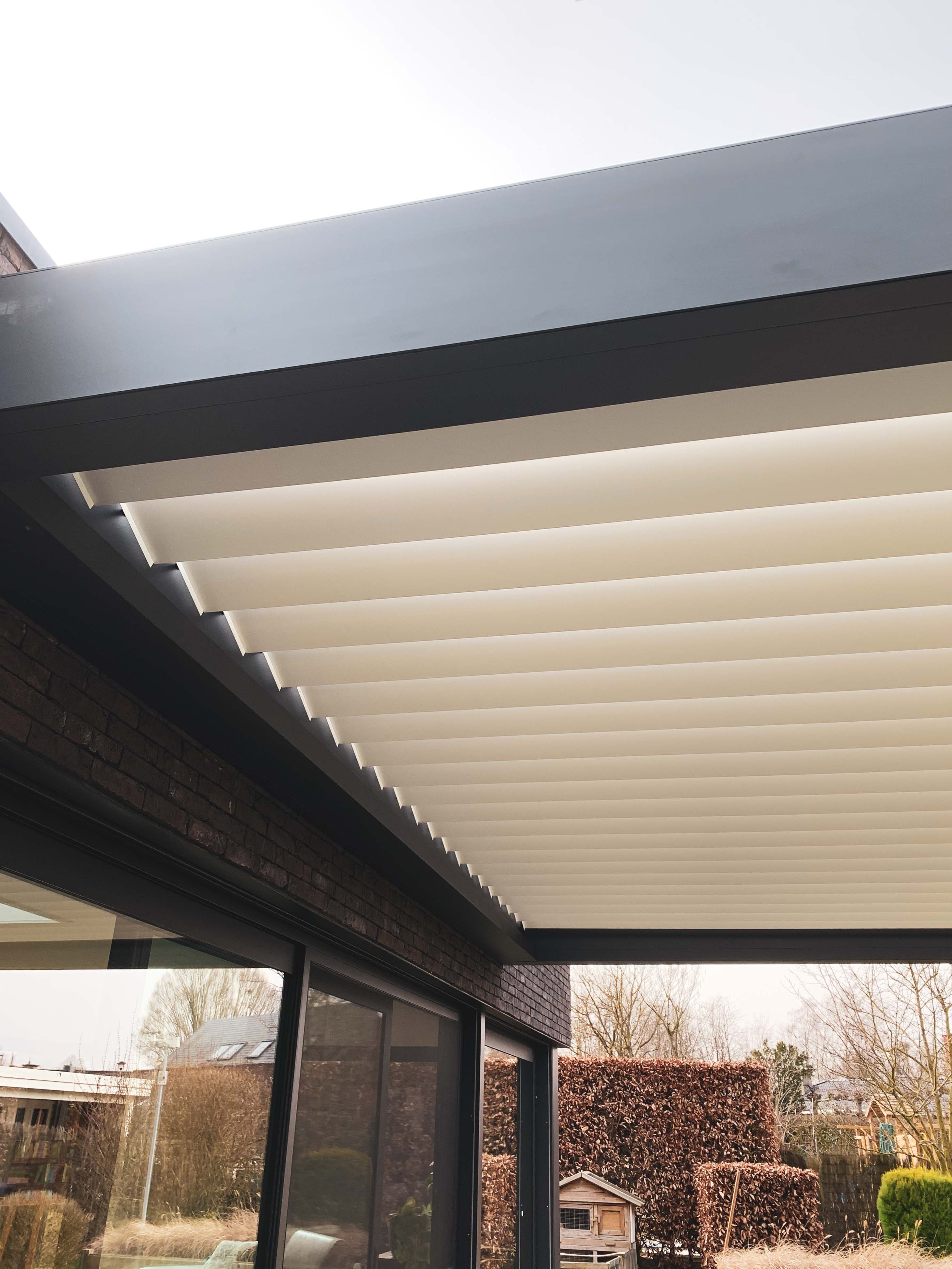 Renson Lapure doekdak. Gemonteerd aan deze strakke nieuwbouw te Deerlijk.