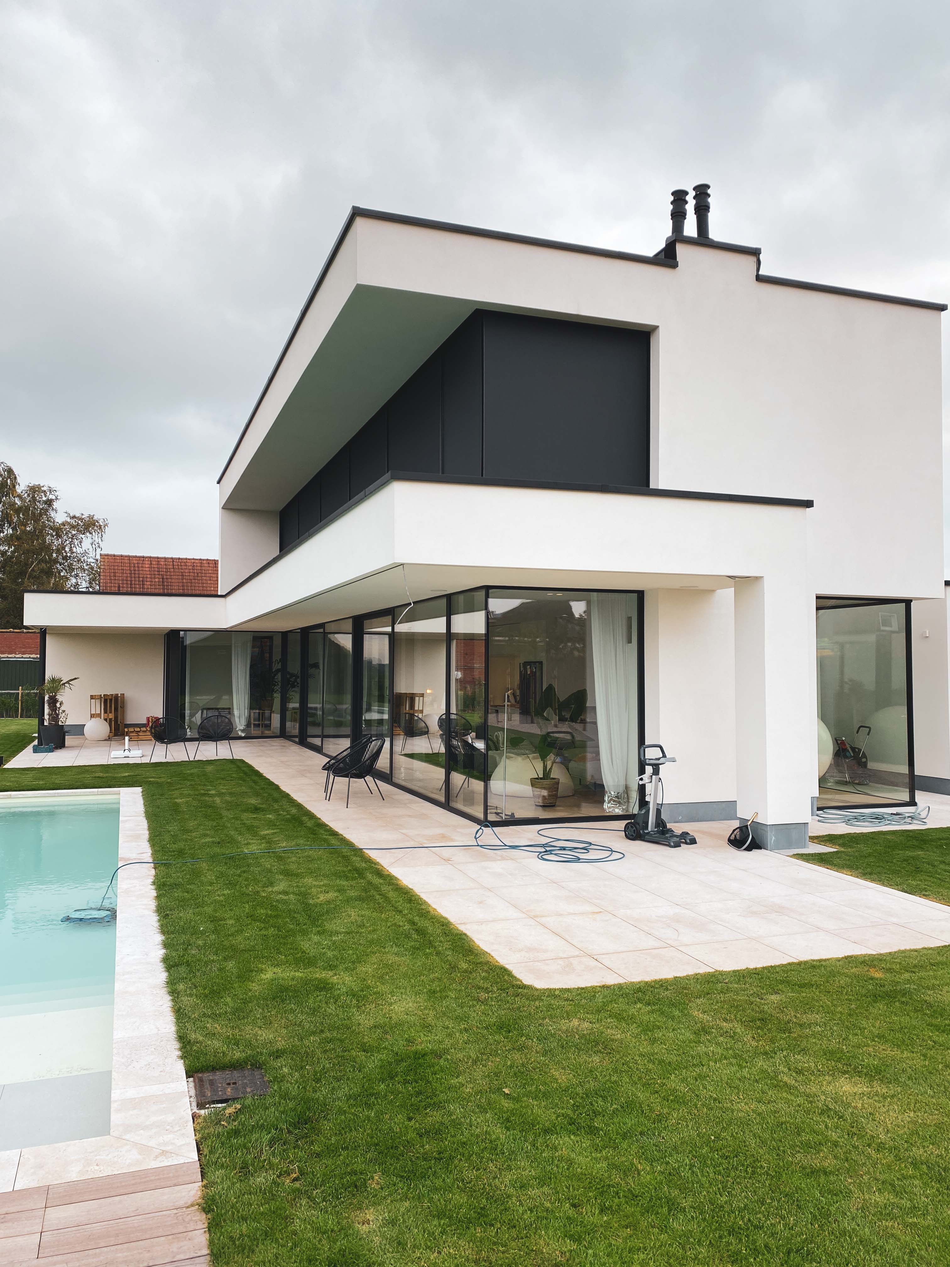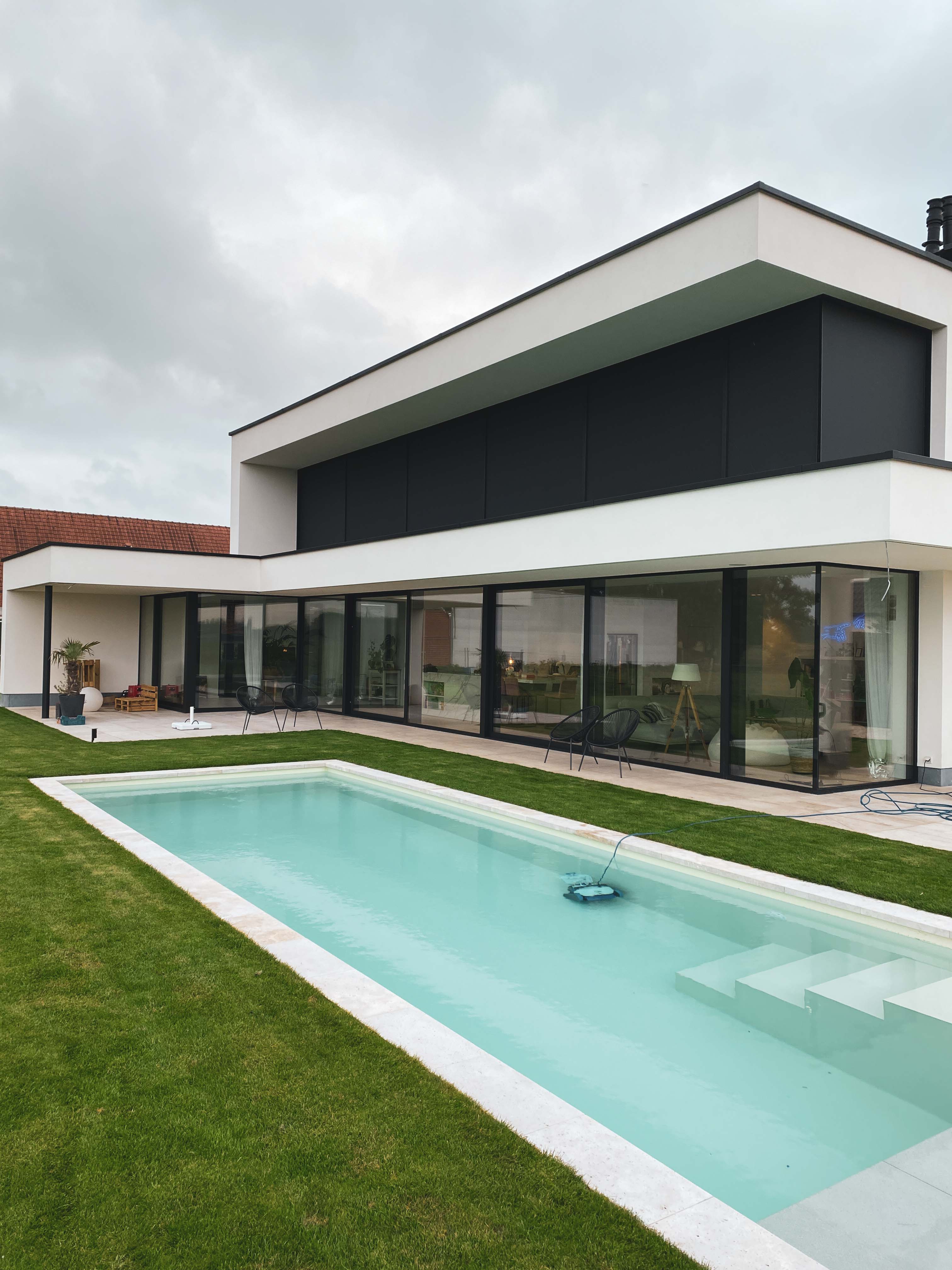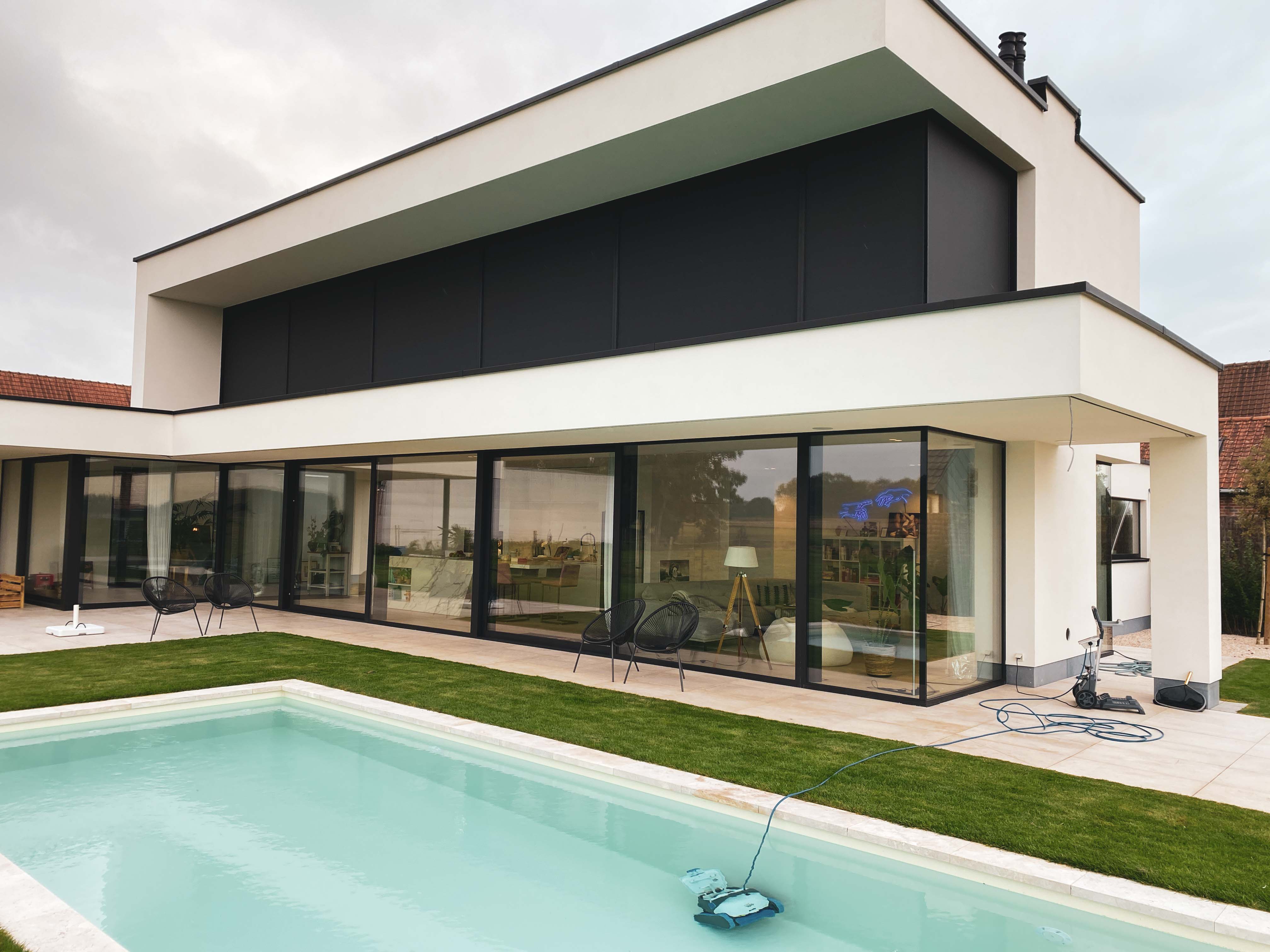 Renson Lapure doekdak. Gemonteerd aan deze strakke nieuwbouw te Deerlijk.